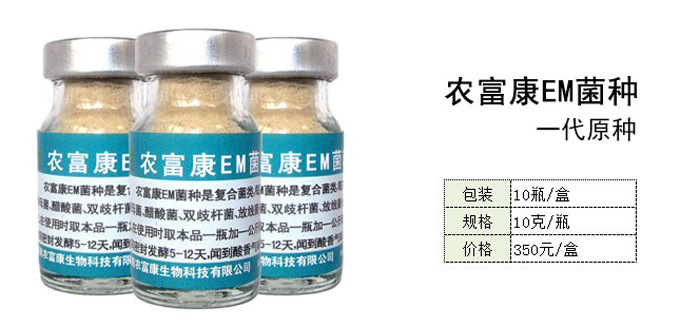 所以,一般购买em菌种的时候,如果说不需要激活的话,那就绝对不是原种,而且购买时候应该注意包装,动辄几公斤的包装一般也不是原种!如下图:农富康em菌种包装为10克/瓶。